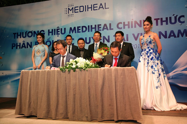 Lễ ký kết phân phối độc quyền Mediheal tại Việt Nam giữa ông Nguyễn Thanh Thuận - Giám đốc kinh doanh Mediheal Việt Nam và ông Lee Bong Keun - Phó chủ tịch Công ty L& P, đại diện thương hiệu Mediheal Hàn Quốc đã diễn ra trong không gian trang trọng.