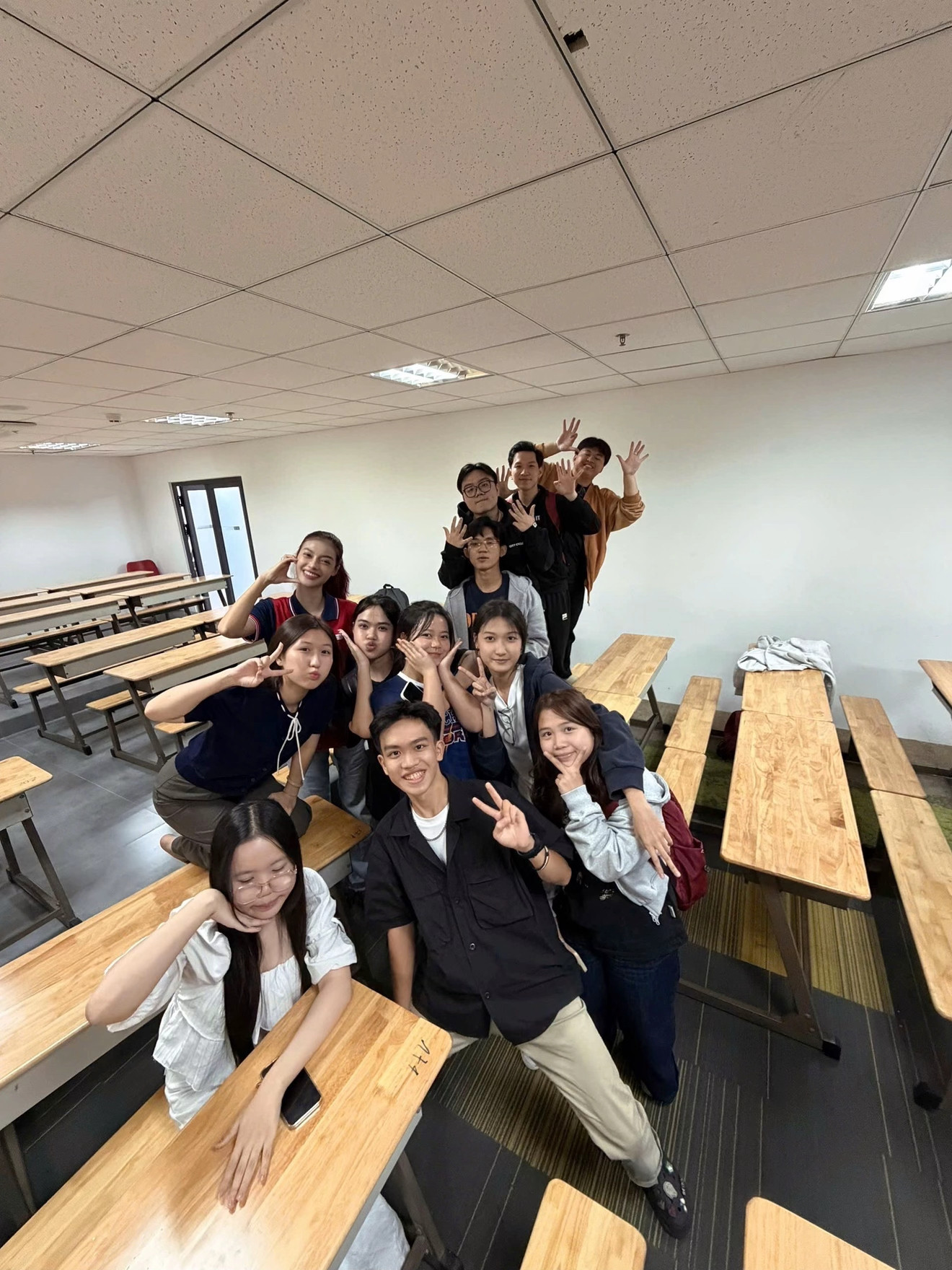 Người đẹp còn đăng hình ảnh cùng các bạn trong chính buổi học tại trường Đại học Quốc tế Hồng Bàng.