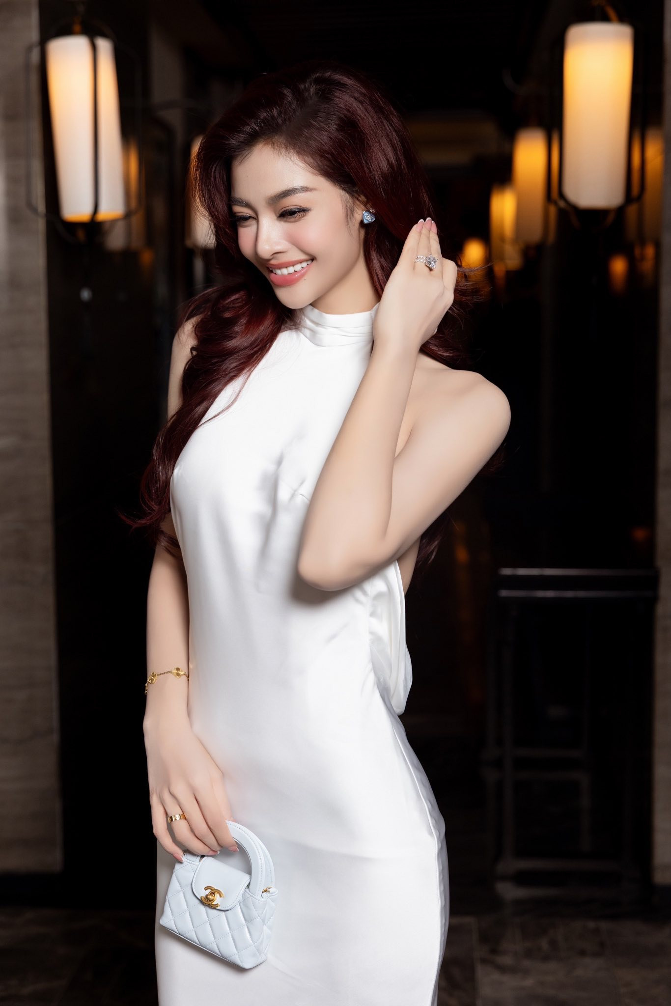 Theo đó, trên trang cá nhân, nàng hậu khoe hình xinh đẹp dự tiệc sinh nhật bé trai. Trong hình, Kiều Loan khoe nhan sắc rạng rỡ với chiếc đầm lụa màu trắng tôn vóc dáng.
