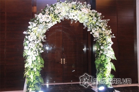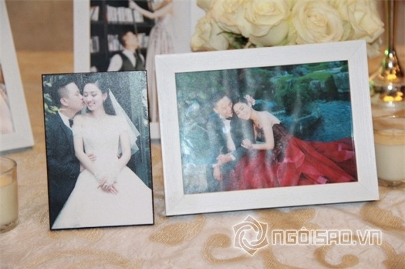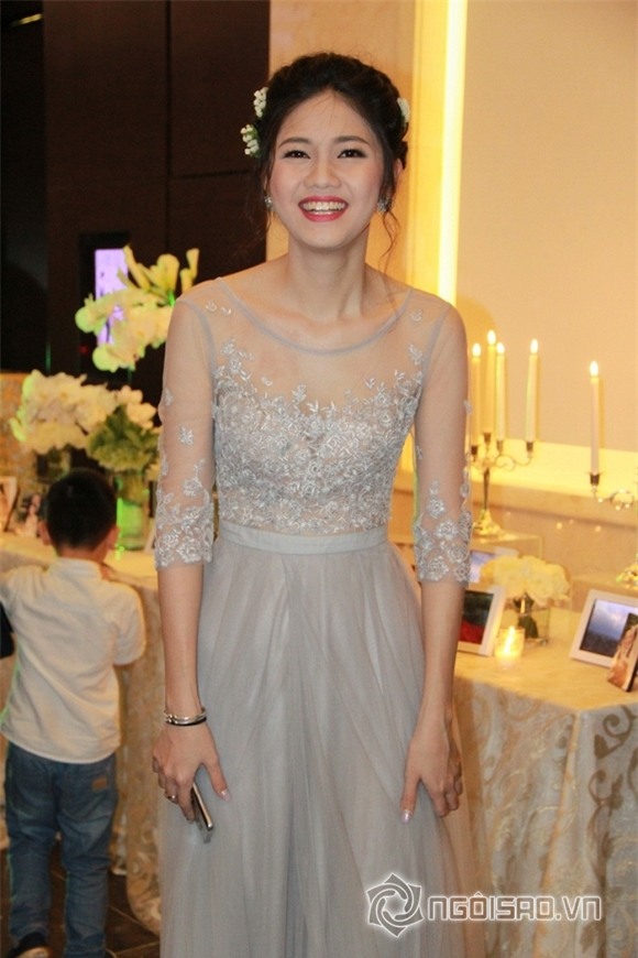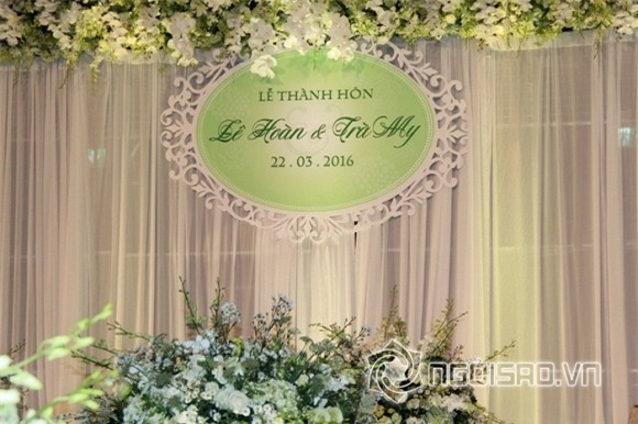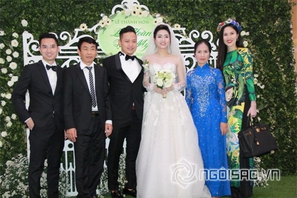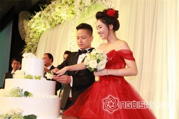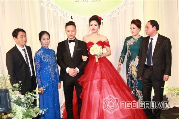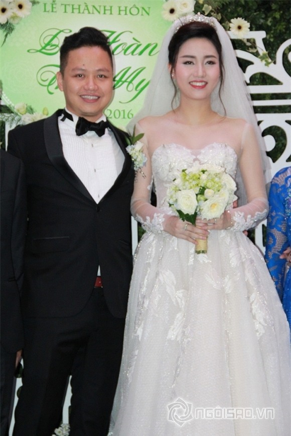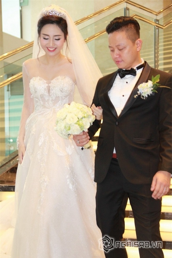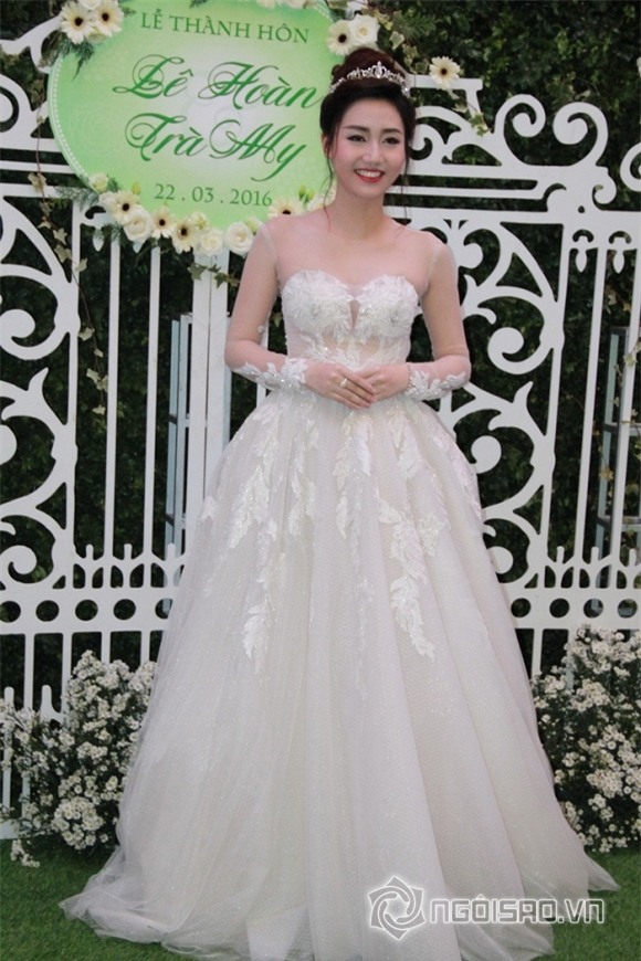 Sau lễ rước dâu, chiều tối nay (22/3) đám cưới Á hậu Ngô Trà My đã được tổ chức tại Hà Nội. Trong không gian tiệc cưới lãng mạn, cô dâu Ngô Trà My diện bộ váy cưới màu trắng rạng rỡ sánh bước bên doanh nhân Lê Hoàn. Dù hơn vợ hơn chục tuổi nhưng chồng Ngô Trà My trông rất trẻ trung và cân xứng. Trong ngày đại hỷ, có rất nhiều người thân và bạn bè đã đến chung vui cùng người đẹp này. Trong tiệc cưới, dù mặc váy xòe rộng nhưng Trà My vẫn để lộ bụng bầu thấy rõ.