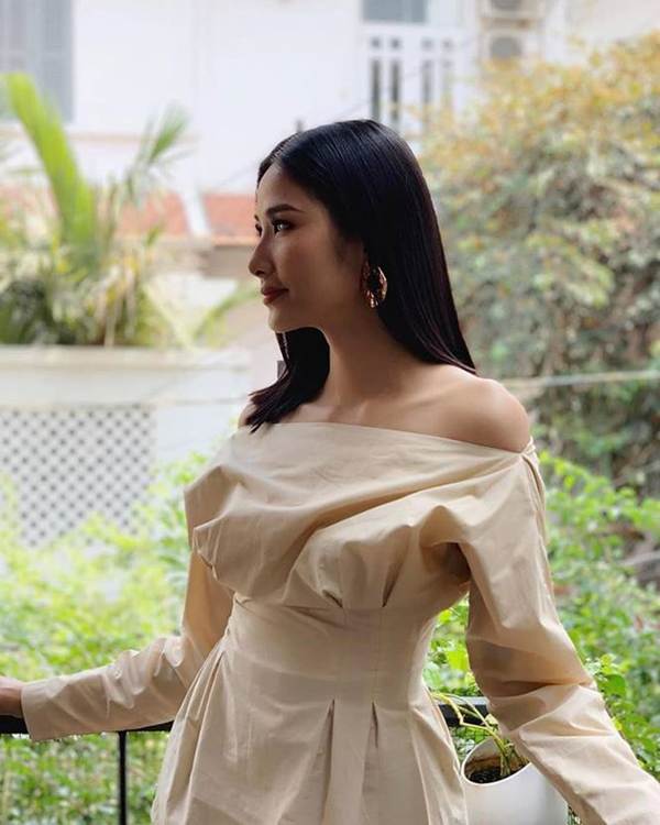 Hoàng Thuỳ gây ấn tượng với trang phục khoe vai trần gợi cảm.