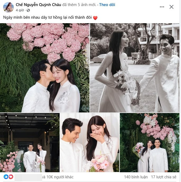 Người đẹp viết trên trang cá nhân: "Ngày mình bên nhau dây tơ hồng lại nối thành đôi".