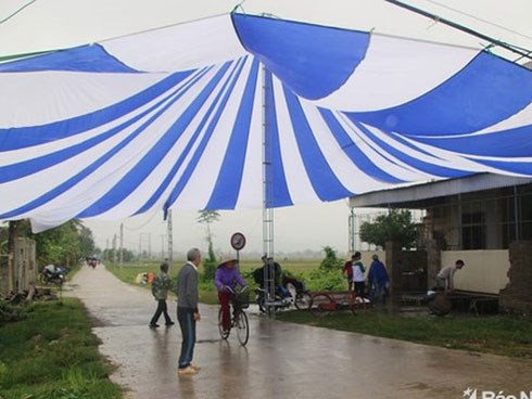 Để phục vụ người thân và làng xóm, bà Vũ Thị Hiền, mẹ cầu thủ Phan Văn Đức đã mua lợn, dựng rạp để thết đãi mọi người tới xem bóng đá.