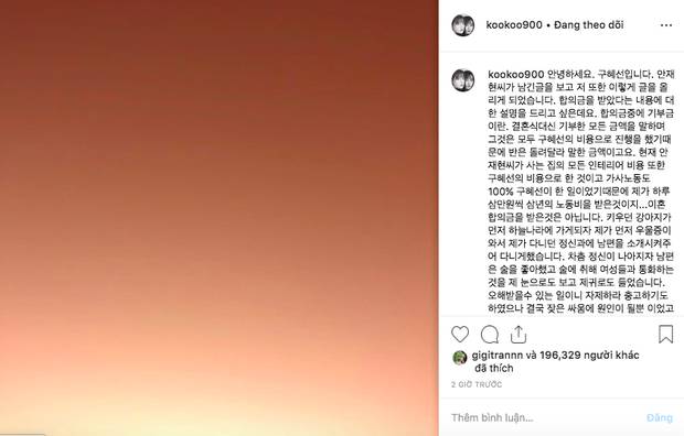 Chưa hết, cô còn chi trả toàn bộ tiền chi phí nội thất cho căn nhà nơi Ahn Jae Hyun ở trong thời gian dọn ra ngoài sống. Nhiều người cho rằng, Ahn Jae Hyun không có tiềm lực tài chính vững mạnh, phải phụ thuộc ít nhiều vào vợ về mặt kinh tế trong thời gian còn chung sống.