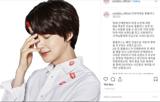 Nhãn hiệu mỹ phẩm thông báo hủy hợp đồng với Ahn Jae Hyun