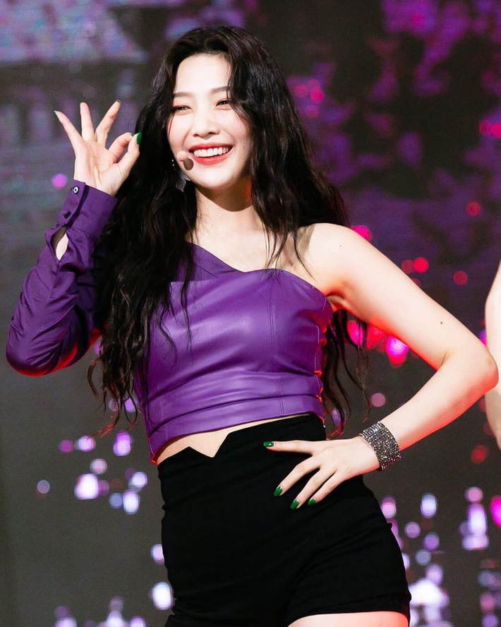 Joy trước đó cũng xinh phải biết khi khoe dáng cân đối với chiếc áo crop top tím lệch vai quyến rũ.