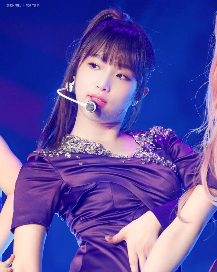 Yena được stylist chọn hẳn một bộ cánh full màu tím luôn này, vậy mà cô nàng có dừ đi tí nào đâu. Ngoài sở hữu nhan sắc trời cho thì công lớn trong việc giúp Yena thêm xinh còn thuộc về lối makeup và kiểu tóc nữa.