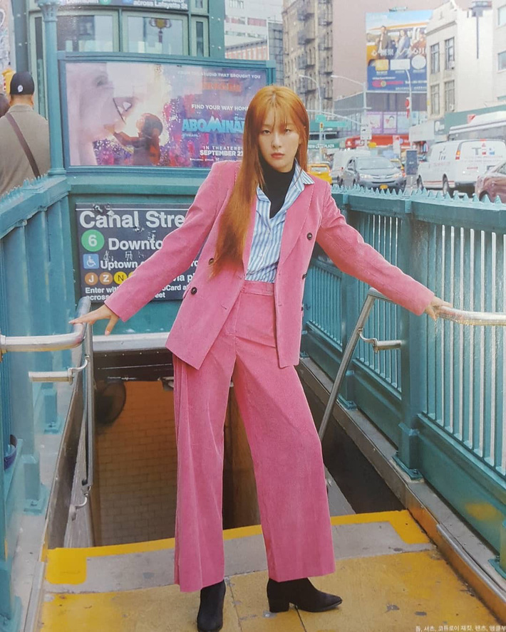 Cựu thành viên SNSD còn lên đồ với bộ suit màu hồng cánh sen sang nhưng không sến.