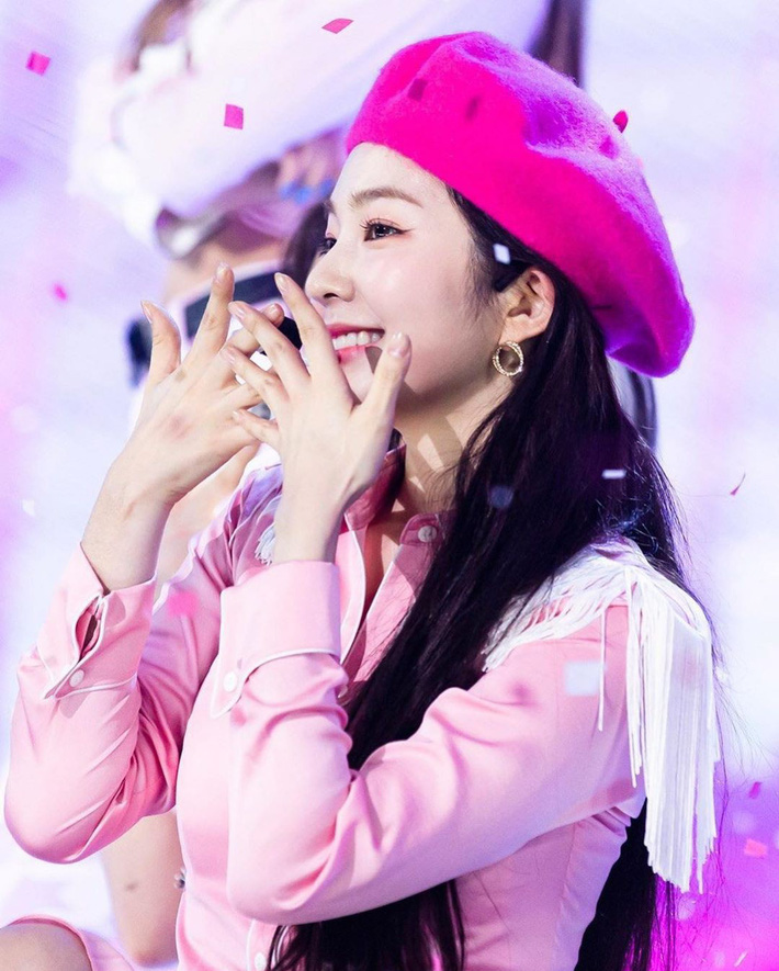 Ai bảo hồng sen là sến khi Irene vẫn quyết chí diện mũ beret có tông màu này.