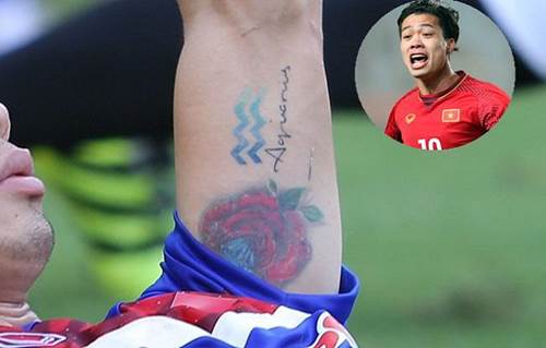 Những hình xăm ấn tượng nhất U23 Việt Nam: Đầu tiên phải kể kến hình xăm hoa hồng và kim cương ở dưới cánh tay của Công Phượng.