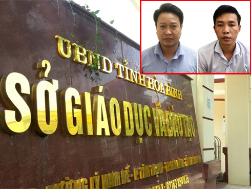 Chiều cùng ngày, Cơ quan chức năng ra quyết định khởi tố, bắt tạm giam đối với 2 bị can Đỗ Mạnh Tuấn (39 tuổi, Phó hiệu trưởng Phổ thông Dân tộc nội trú THCS và THPT huyện Lạc Thủy, tỉnh Hòa Bình) và Nguyễn Khắc Tuấn (37 tuổi, chuyên viên Phòng Khảo thí và Quản lý Chất lượng giáo dục của Sở GD-ĐT tỉnh Hoà Bình) về hành vi Lợi dụng chức vụ, quyền hạn trong khi thi hành công vụ quy định tại Điều 356 Bộ luật hình sự. Đồng thời, Cơ quan An ninh và Viện Kiểm sát đã có mặt tại một ngôi nhà ông Nguyễn Khắc Tuấn thuê ở tổ 21 (phường Tân Thịnh, TP Hòa Bình, tỉnh Hòa Bình)