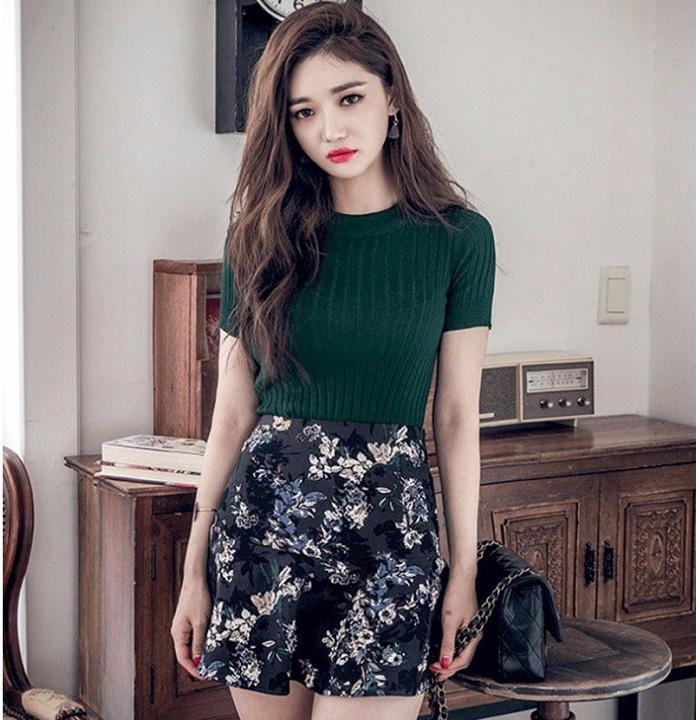 Những thiết kế len tăm trơn màu vẫn có thể giúp bạn gái nổi bật khi kết hợp với quần cạp cao hoặc chân váy hoa sặc sỡ.