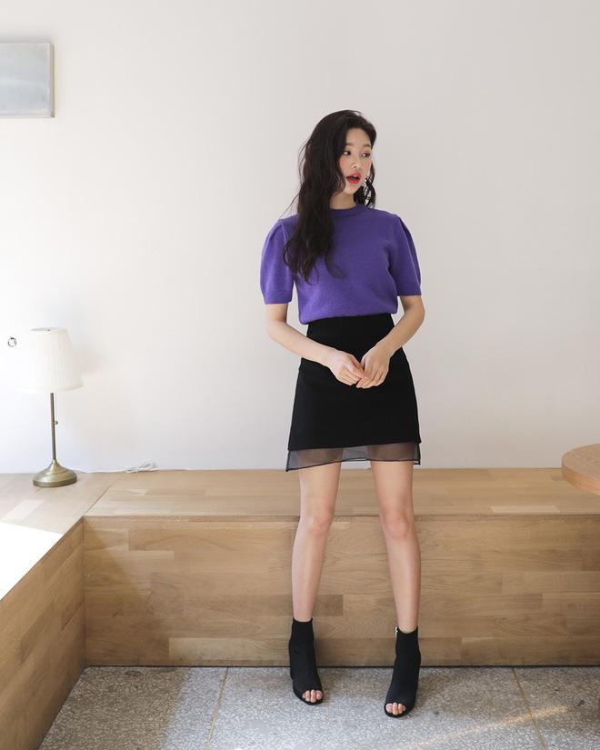 Thiết kế cổ tròn và ôm của chiếc áo len cộc tay còn là cứu tinh cho những cô nàng có thân hình mảnh mai vì phần vòng 1 cũng được "ăn gian" khá nhiều.