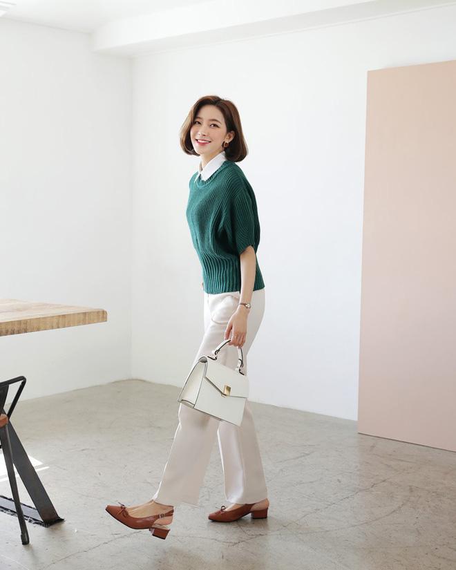 Phái đẹp công sở hoàn toàn có thể mặc sơ mi tay ngắn bên trong áo len cộc tay, vừa lịch sự lại vừa tinh tế khi kết hợp cùng quần âu hay chân váy.