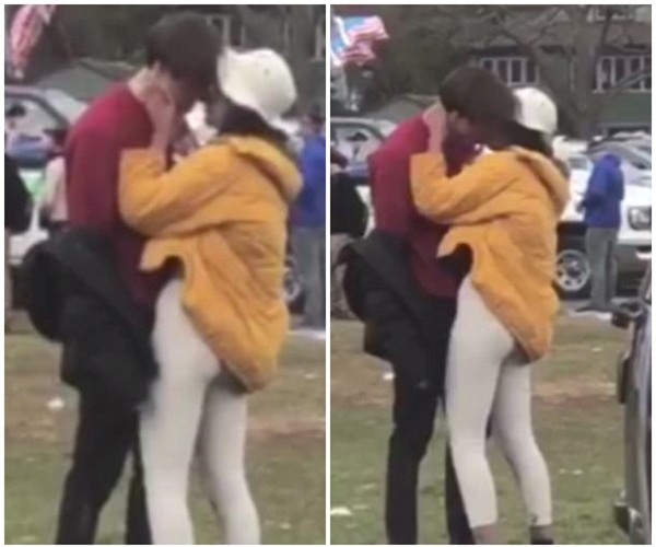 Cặp đôi thoải mái "khóa môi" ngay tại nơi công cộng.