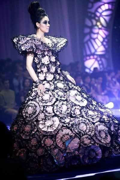 | Một số thiết kế đẹp mắt trong bộ sưu tập mang tên Nấm được NTK Nguyễn Công Trí trưng bày ở tuần lễ thời trang London 2013 |