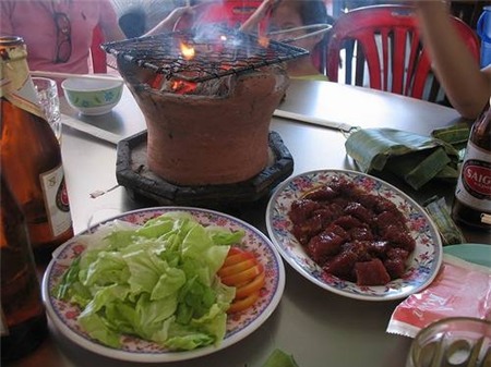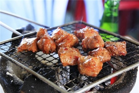 bò nướng nơi đây. Bò được xắt miếng nhỏ vuông vức vừa ăn, tẩm ướp thứ