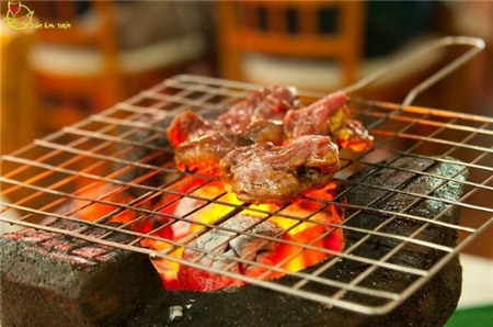 nướng trực tiếp trên than hoa theo hình thức nướng lụi, khách tự đặt bò
