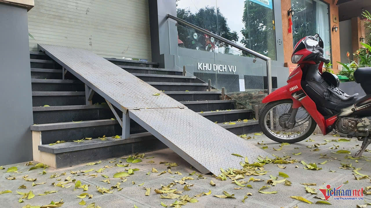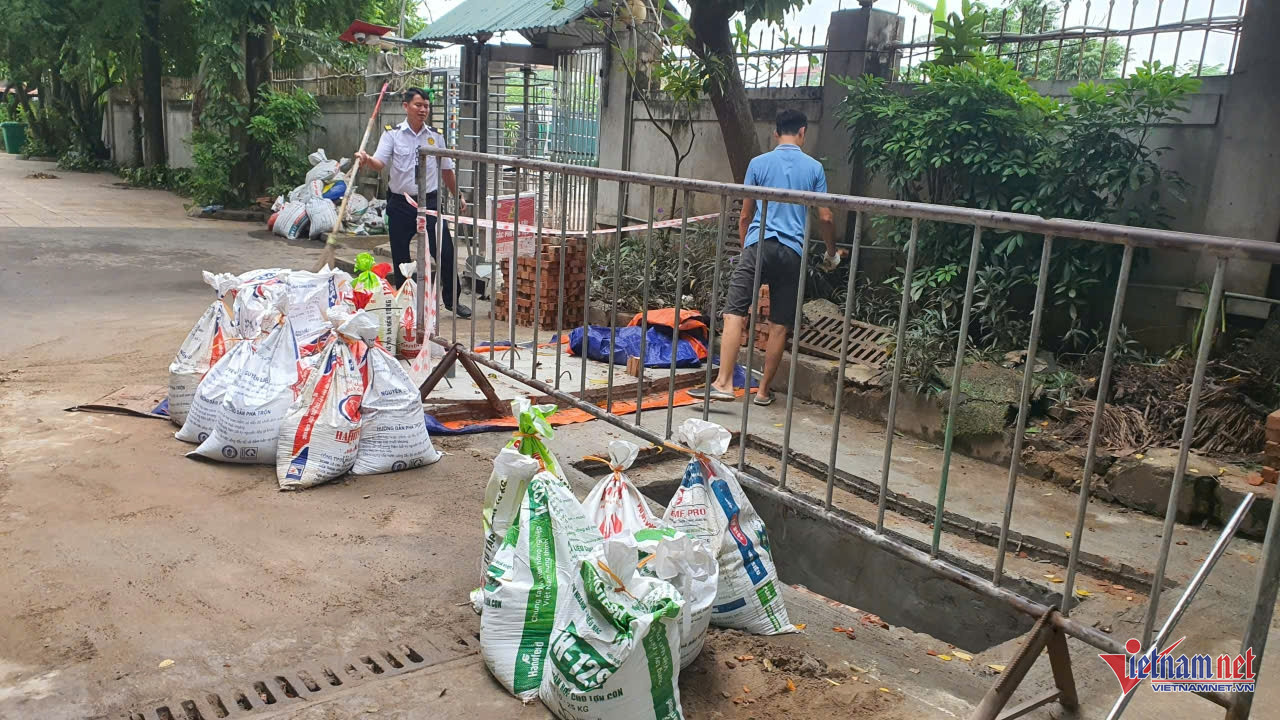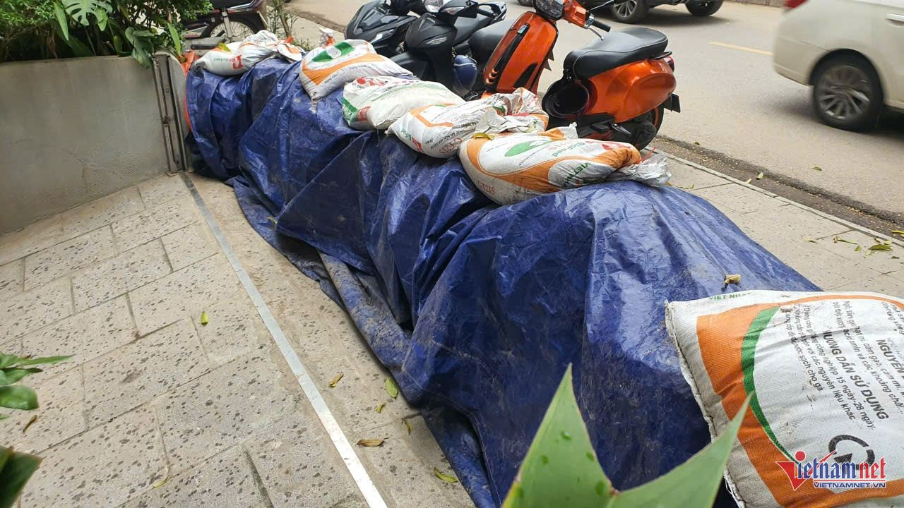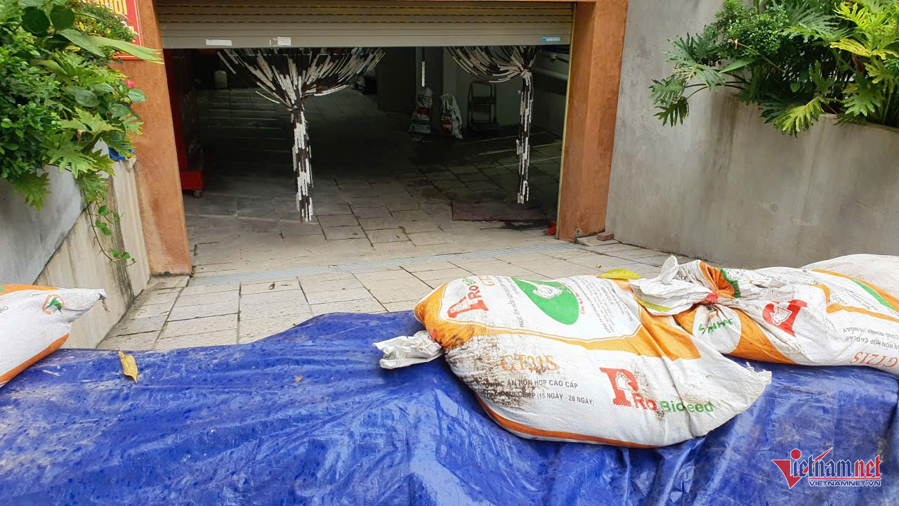 Không chỉ các hộ dân, nhiều cơ sở kinh doanh cũng ráo riết triển khai biện pháp chống ngập. Tại một phòng giao dịch ngân hàng trong khu đô thị Geleximco, hệ thống cửa chắn nước bằng sắt, vận hành bằng thủy lực, đã được lắp đặt. Thiết bị này được thiết kế âm dưới nền, chỉ cần nhấn nút kích hoạt, tấm chắn sẽ tự động bật lên, biến cửa ra vào thành “bức tường thép” ngăn nước.