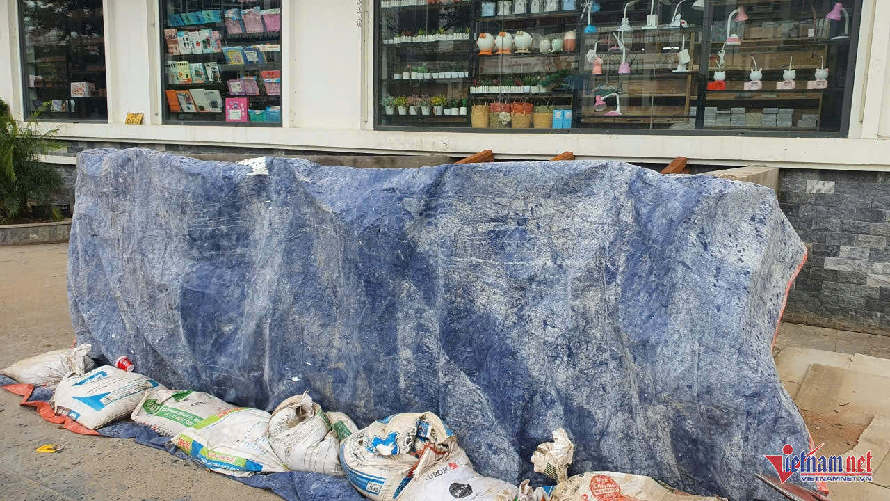 Tại khu đô thị Ecohome 1, hàng loạt bao cát nặng 40–50kg được buộc chặt, xếp dọc cửa ra vào các tòa nhà, chỉ chừa một lối nhỏ cho cư dân đi lại.