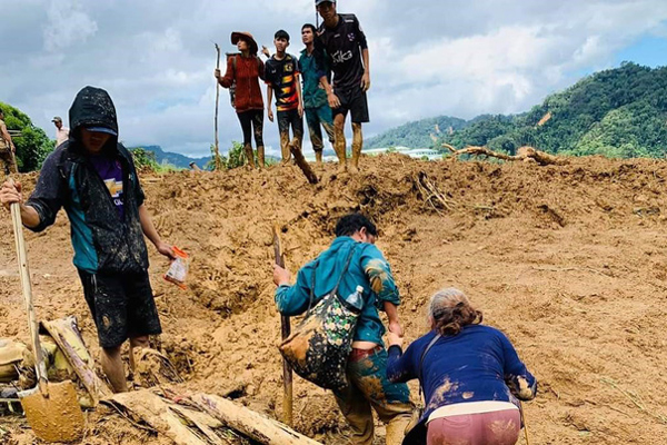 “Tôi bị đất lấp chỉ còn lòi phần đầu, đoạn gỗ sườn nhà đè trên chân không thể thoát được. Tôi kêu cứu thì anh em quanh đó chạy đến kéo tôi ra. Lát sau, lực lượng dân quân, người dân chạy đến đào được gia đình tôi”, chị kể, giọng vẫn còn run run.