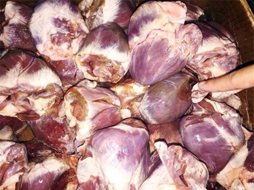 Phát hiện hơn 1 tạ tim lợn đông lạnh đã mốc xanh