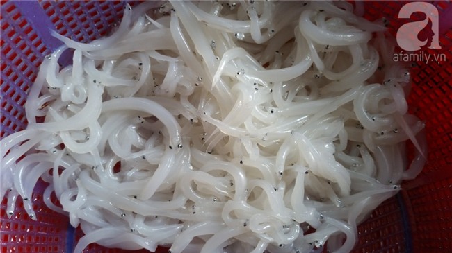 Cá ngần mua về ngâm với chút nước muối loãng khoảng 5 phút cho sạch rồi cho ra rổ để ráo nước.