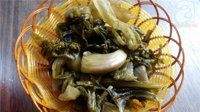 Dưa chua rửa lại với nước cho rồi để ráo nước.