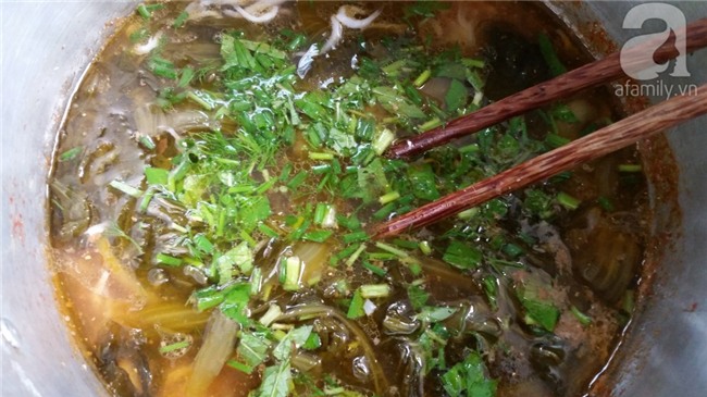 Để cá và dưa sôi lên thì cho vào nồi 3 bát ăn cơm nước lọc. Khi nồi canh cá sôi lên, để thêm 5 phút thì nêm nêm gia vị, cho hành, rau răm thì là và ớt cắt nhỏ vào, rồi tắt bếp.