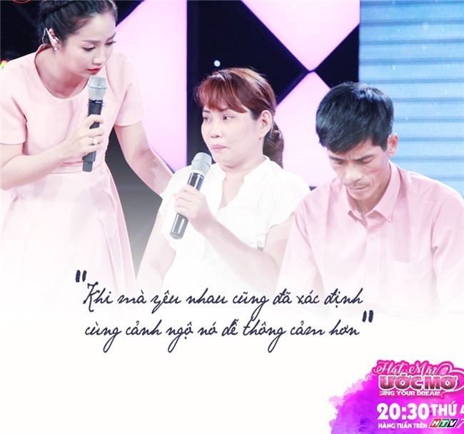 Tham gia chương trình tối qua, câu chuyện về hai vợ chồng bị khuyết tật, thi hát để chắp cánh ước mơ đến trường cho cậu con trai đang học lớp 1 khiến bộ ba giám khảo và khán giả chương trình không kìm nổi lòng.