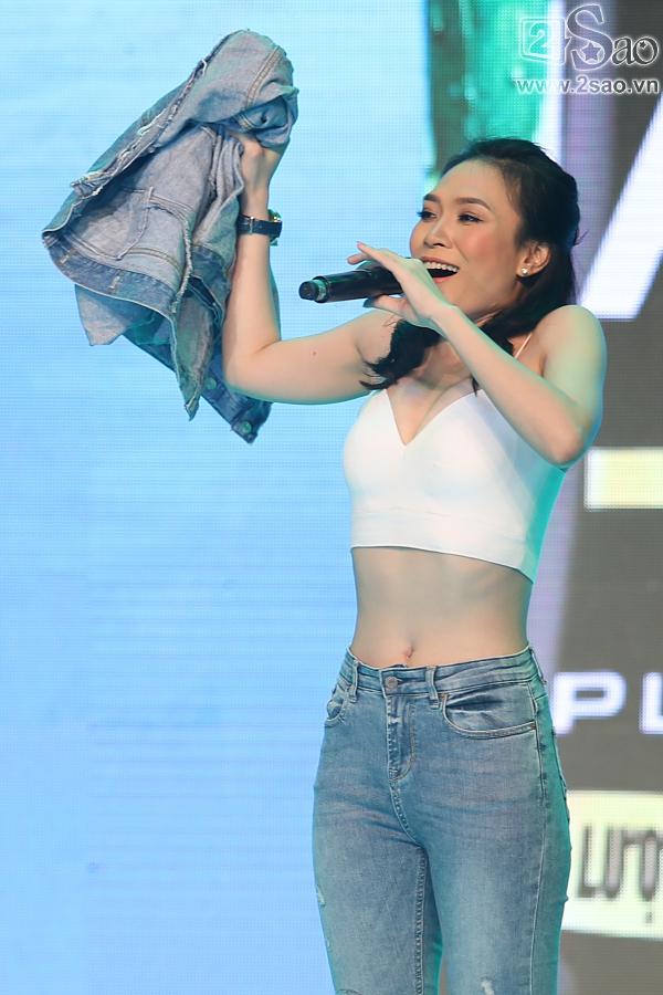 Sân khấu càng nóng hơn khi Mỹ Tâm cởi áo khoác bên ngoài và khoe vòng eo con kiến.