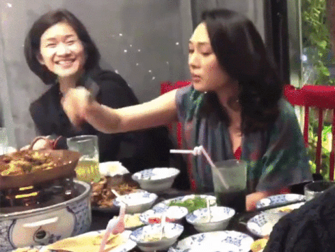 Hoàng Yến Chibi và Jun Vũ tái hiện lại một cảnh trong phim Tháng năm rực rỡ.