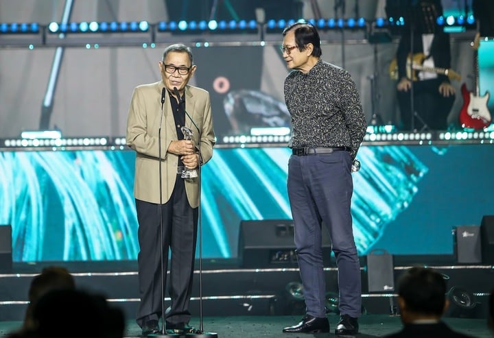 Hai nhạc sỹ Dương Thụ và Bảo Chấn nhận giải "Thành tựu Làn Sóng Xanh".