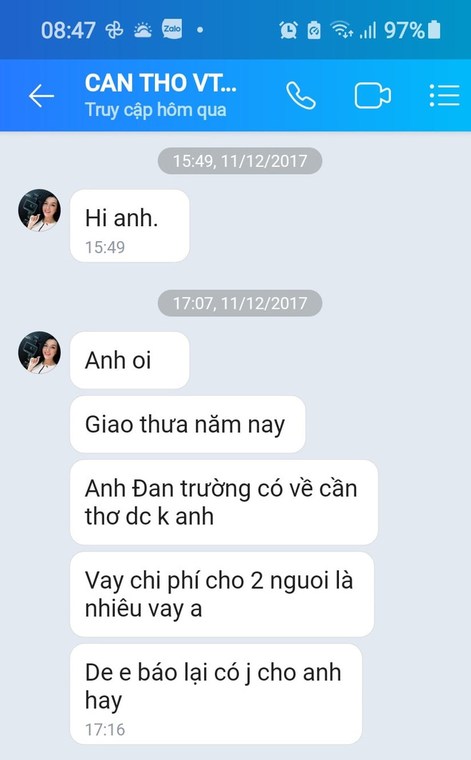 2. Về công ty gì đó ở Cần Thơ thì thú thật, anh chưa hề biết tên công ty hay Giám đốc là ai và chưa hề nói chuyện hay cộng tác. Cách đây 4 năm (Tết 2017) Đan Trường có hát Giao thừa tại Cần Thơ và người mời tự xưng là ở VTV Cần Thơ (trong danh bạ điện thoại, Anh Tuấn vẫn ghi là cô bé đó là VTV Cần Thơ, và sau này chưa hề tự giới thiệu là nhân viên công ty A,B,C nào đó, mà chỉ nói là Em ở Cần Thơ, muốn mời show… và tuyệt nhiên anh Tuấn chưa hề tiếp xúc công ty đó ở Cần Thơ). Sau đó, những năm sau, ngày 11/12/2017 (chuẩn bị Tết 2018), 30/11/2018 (chuẩn bị Tết 2018), 04/12/2018 (chuẩn bị cho Tết 2019 )… cô bé đó đều nhắn tin mời, nhưng không thỏa thuận được thời gian biểu diễn, cũng như anh Tuấn đã nhận lời hát tại tỉnh khác nên gần 4 năm nay anh không nhận hát Giao thừa tại Cần Thơ. Đến ngày 16/01/2021, sau khi Anh Tuấn từ chối cho Đan Trường hát show Giao thừa Cần Thơ, vì không sắp xếp được giờ diễn cho Đan Trường, Trung Quang gần nhau, thì có một người tự xưng là Sen, Giám đốc Công ty T.H.T.C.T, nói lại sự việc, và có những lời lẽ không đẹp và hăm dọa anh. Lẽ ra nếu một người hiểu chuyện, mà đúng là Giám đốc một công ty sự kiện thì phải liên lạc đàm phán và tìm hướng giải quyết tốt nhất cho cả 2 bên. Nhưng cô ấy, đã tự chặt đường lui của cả 2 bên, dù rằng anh chưa hề ký hợp đồng biểu diễn với bất kỳ một cá nhân hay Công ty T.H.T trong dịp Giao thừa này. Những thỏa thuận qua điện thoại, hay tin nhắn, chỉ là bước đầu để tiến tới làm hợp đồng giữa 2 bên, nhất là đây là chương trình lớn của thành phố thì phải có hợp đồng ký giữa 2 công ty chứ không thể dựa vào tin nhắn để xem như hợp đồng. Vì giữa công ty ở Cần Thơ đó, đã 3-4 năm nay anh Tuấn không có làm việc và không biết pháp nhân của đơn vị mời là ai, thì làm sao dám tin tưởng qua những tin nhắn của 1 cá nhân? Mặc khác, theo quy định của nhà nước, tất cả những khoản tiền trên 20 triệu đều phải có hợp đồng, chứng từ và chuyển khoản.