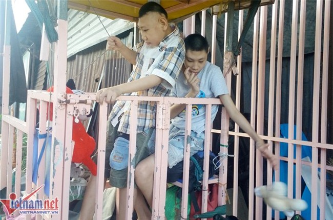 Chiếc cũi thân thuộc của hai người con bị teo não của anh Hữu Nghị.