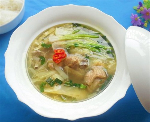 Trút măng vào nồi vịt, đun thêm chừng 5 phút, nêm lại gia vị cho vừa ăn.