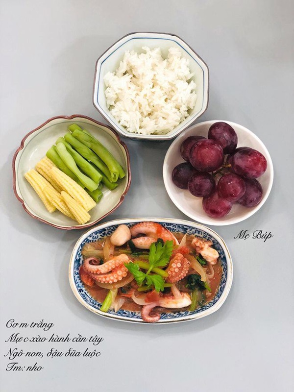 Do con ăn cùng với bố mẹ nên chi phí mỗi bữa ăn của gia đình chị tiết kiệm khá nhiều. Mỗi ngày chị dành khoảng 100-120 nghìn/bữa, với những ngày ăn đổi món hải sản chị dành khoảng 150 nghìn, bao gồm cả hoa quả tráng miệng.
