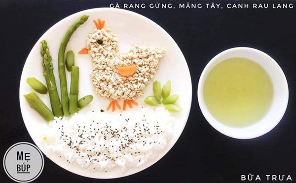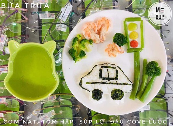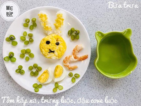 “Mọi người nghĩ những món ăn mình trang trí vô cùng cầu kỳ nhưng thực chất mình làm rất đơn giản. Khi nấu mình đã nghĩ sẽ làm gì, trang trí ra sao rồi cắt tỉa luôn để tiết kiệm thời gian. Do mình đi chợ từ trước nên việc nghĩ tạo hình món ăn đơn giản hơn. Mình thường tận dụng nhà có gì dùng đó và ưu tiên tạo đa dạng màu sắc hấp dẫn cho con, bên cạnh đó thay đổi nhiều hình dạng khác nhau cho con đỡ nhàm chán”, chị Tuyết chia sẻ.