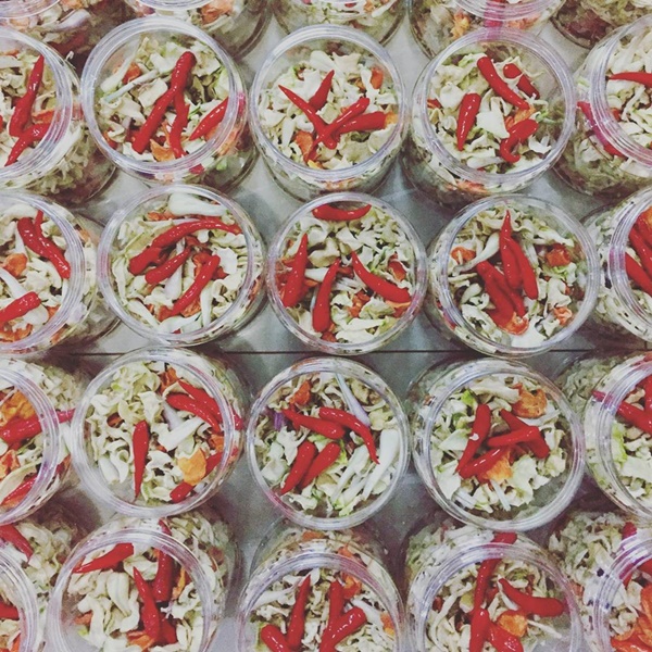 Bánh chưng, bánh tét tròn vị nhất khi kẹp kèm miếng dưa kiệu mằn mặn, the the. Củ kiệu trước khi đem đi ngâm trong hỗn hợp muối, nước mắm, đường thì được làm sạch, phơi khô. Cũng vì lẽ đó, thành phẩm đặc trưng với vị mặn, giòn sần sật. Dưa kiệu có vai trò như món khai vị, vị chua của nó giúp hệ tiêu hoá tránh quá tải trong những ngày Tết sắp đến. Ảnh: Louisscorpio, uyennha.