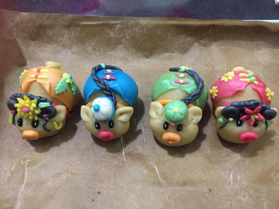 Chị Yến Chu, một thành viên của hội yêu thích làm bánh đã khiến bao chị em phải thốt lên kinh ngạc trước mâm bánh trung thu quá xuất sắc của mình. Những chú heo con dễ thương khoác lên mình bộ cánh đúng chuẩn phong cách phi tần trong “Diên Hi công lược”. Chắc không chỉ người lớn mà bất kỳ một đứa trẻ nào cũng đều thích mê những chiếc bánh như thế này.