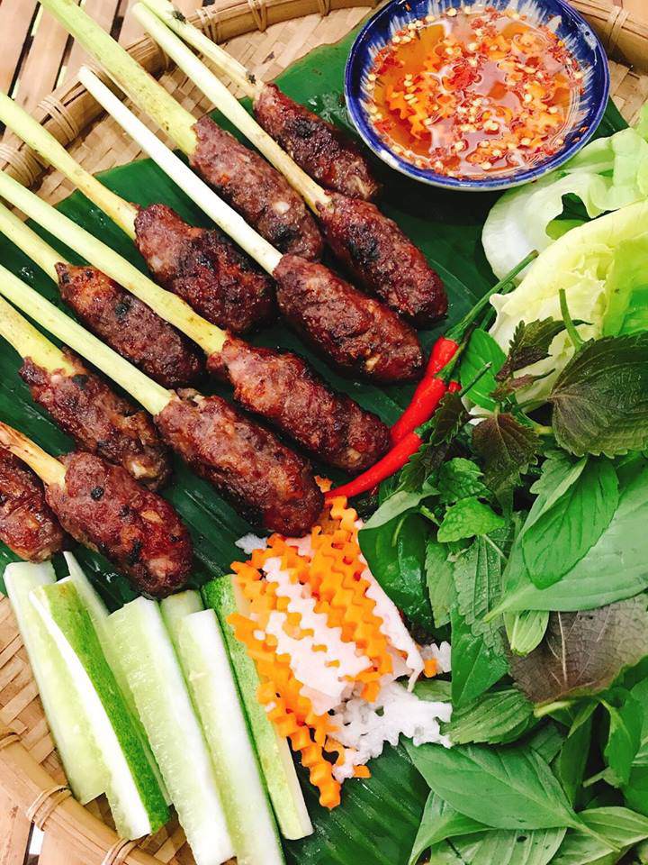 Bò cuộn sả nướng ăn kèm rau sống, củ muối chua và nước chấm. Cũng có thể ăn cùng cơm, bún tươi hoặc bánh mì đều ngon.