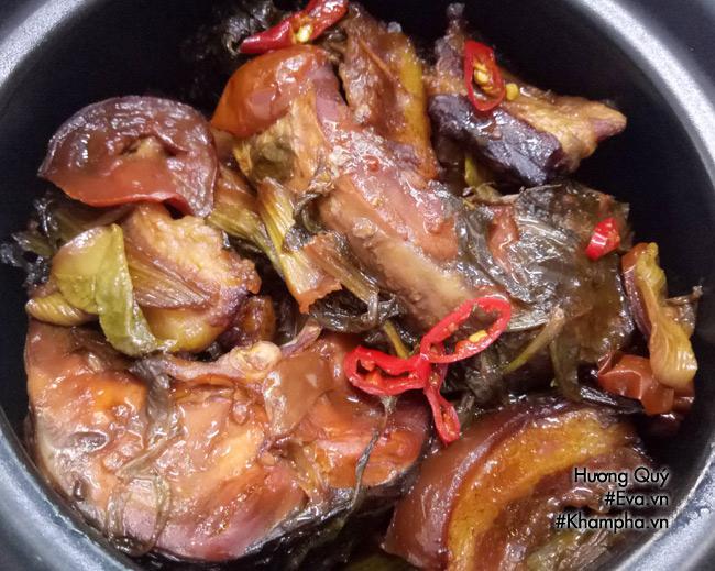 Cá kho dưa nên kho khoảng 45-60 phút hoặc thấy cá chín mềm, phần nước kho cá khô ở đáy nồi là được.