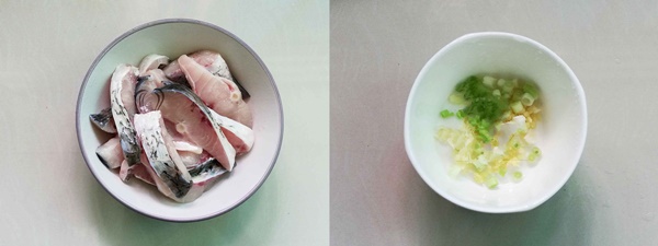 Cá rửa sạch rồi ướp với chút muối trong khoảng 1 giờ. Hành thái nhỏ, tỏi gừng băm nhỏ.