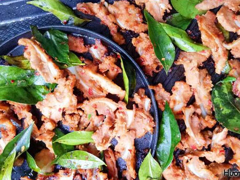Cho ớt xào ra bát, thêm giấm gạo, chút muối, dầu mè, hành lá thái nhỏ và ít vừng rang vào trộn đều. Cuối cùng đổ ít dầu đun nóng vào trộn đều. Cho tỏi vào đĩa lưỡi luộc, thêm rau mùi và đổ xốt dầu cay vừa trộn lên trên là xong.