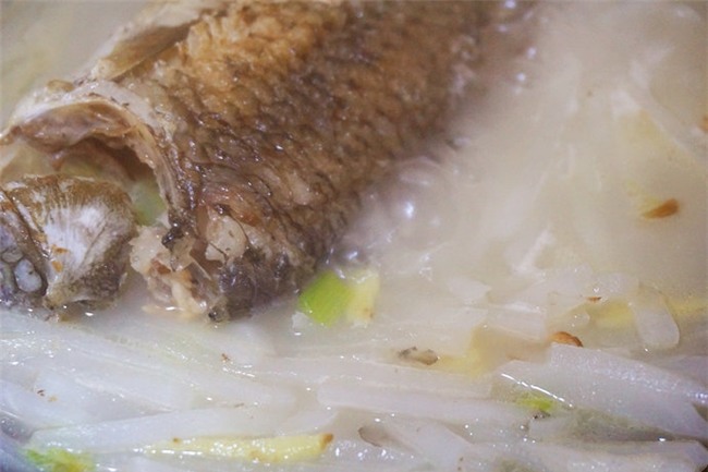 Cho cá đã chiên vào chảo củ cải, thêm lượng nước vừa ăn vào đun sôi rồi hạ nhỏ lửa đun khoảng 15 phút.
