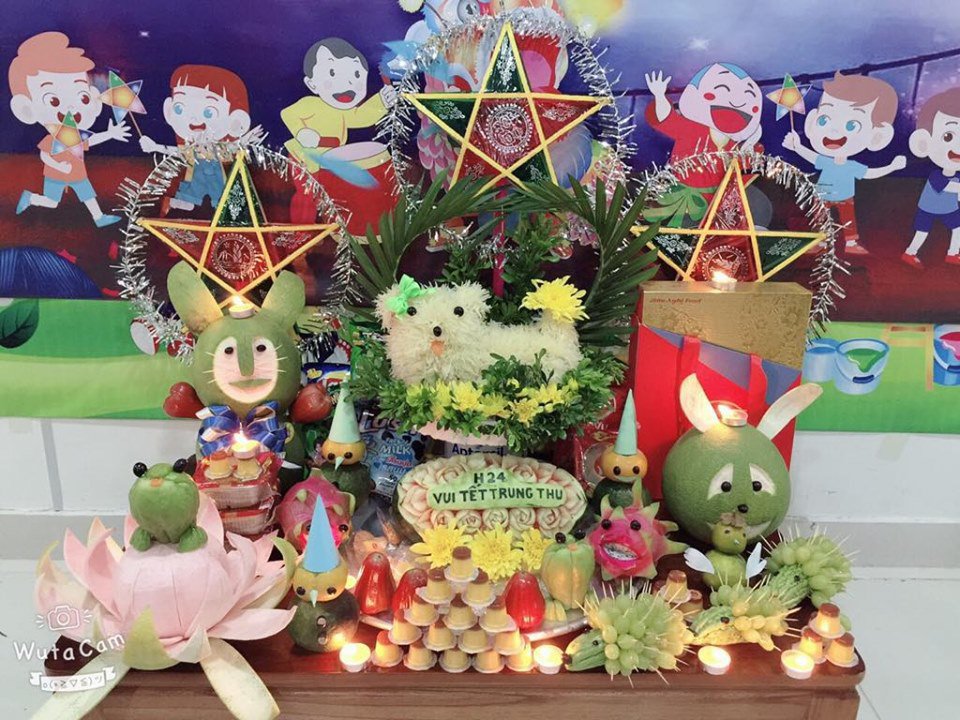 Mâm cỗ Trung thu hoàn thiện, sinh động của chị Bảo Yến cùng các phụ huynh khác