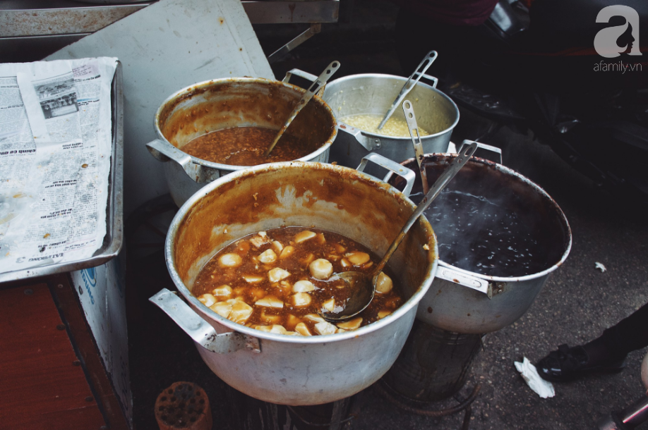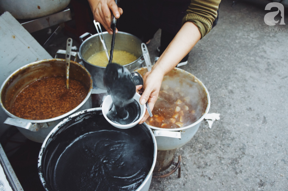 Trời càng lạnh thì những "chiếc bụng đói" đều muốn kiếm chút gì ấm nóng, ngọt ngào để cân bằng. Khi chúng tôi ghé quán, cả mấy nồi chè đã vơi gần hết. Theo quan sát, chè mè đen và sủi dìn là hai món được ưa chuộng bậc nhất ở đây. Là người anh em của món bánh trôi tàu, sủi dìn có lớp vỏ mỏng từ bột nếp kết hợp với nhân vừng đen rang thơm hoặc đậu xanh nhuyễn và dừa nạo sợi. Phần nước của món ăn nấu từ mật mía và gừng già.
