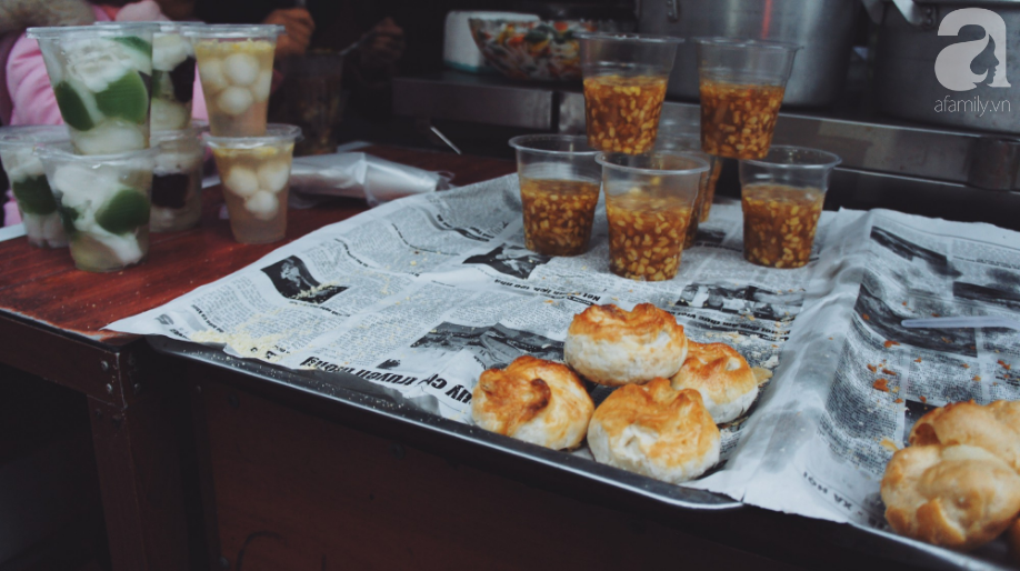 Vẫn cảm thấy vẫn thiêu thiếu cho buổi chiều đông ủ dột, thì ngay đối diện quán ốc thơm ngon hơi đắt vừa ăn là một quán chè đông nghẹt khách. Nào đỗ xanh đặc, chè sắn, mè đen rồi lại sủi dìn, dù biết có lỗi với công sức giảm cân nhưng đành tặc lưỡi "chẳng mấy khi". Khách hàng ở quán có đủ thành phần, từ tiểu thương trong chợ, những người dân sống xung quanh khu trung tâm và các bạn trẻ rủ nhau đi ăn chiều.