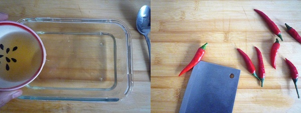 Sau đó thêm giấm vào trộn chung với nước đường. Ớt rửa sạch, dùng dao cắt một đường dọc theo trái ớt.