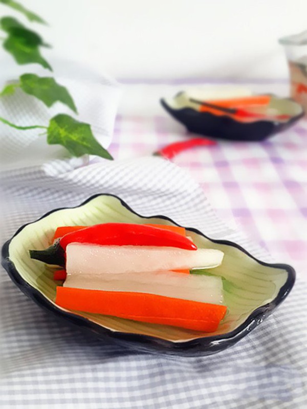 Củ cải cà rốt trộn chua ngọt có vị giòn ngon rất dễ ăn. Món ăn này chế biến nhanh mà ăn kèm với các loại thịt, cá chiên hay nướng đều vô cùng hợp vị.